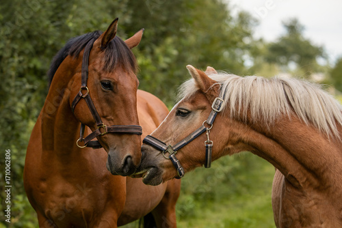 Zwei Pferde beschnuppern sich
