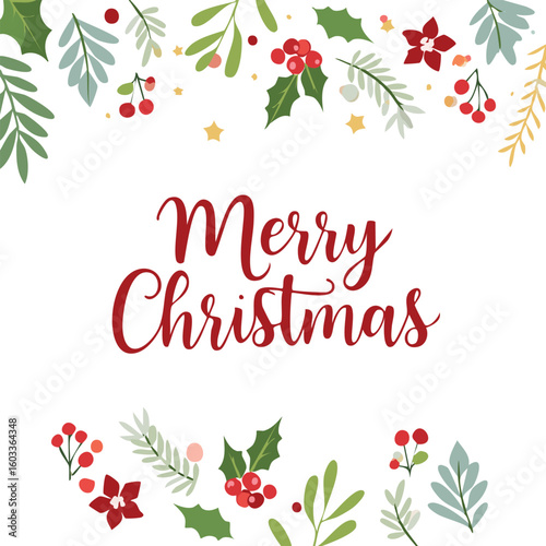 "Merry Christmas" text with holly and berries, holiday greeting