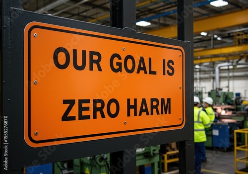 "OUR GOAL IS ZERO HARM" Sign in Industrial Facility: A prominent orange sign with bold black lettering stating "OUR GOAL IS ZERO HARM" is displayed clearly.