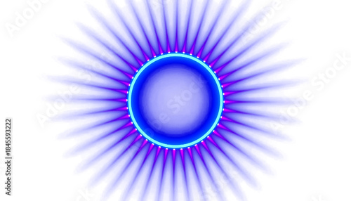 "Futuristic Neon Sunburst Vector . Glowing Blue Abstract Light Circle Design for Digital and Graphic Projects .