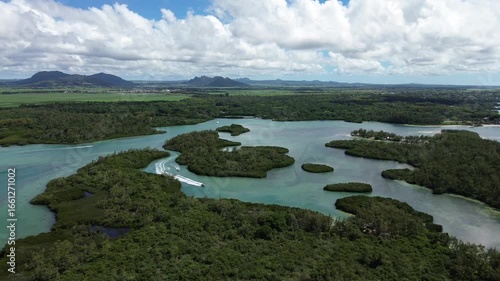 "Vol en drone 4K au-dessus de l’Île aux Cerfs, lagon turquoise et plages paradisiaques de l’île Maurice dans l’océan Indien, destination de rêve et panorama aérien unique"