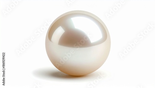"Single lustrous pearl with creamy iridescence and spherical shape on plain white background"