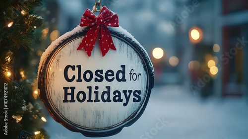 "Closed for Holidays" in bold black text on white, accented with small red bow at top for holiday color.