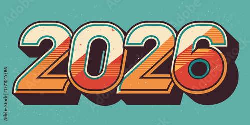 "Retro vintage 2026 text with bold typography, halftone effect, classic 80s–90s style colors, grunge texture, vector lettering perfect for posters, t-shirts, and nostalgic designs"