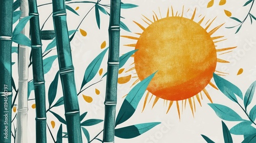 "Radiant Bamboo Sunrise: A Serene Nature-Inspired Design"