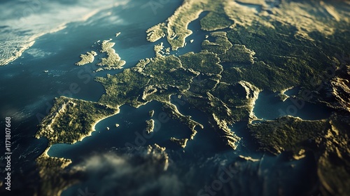 "A clean, sharp outline of Europe with every country and coastline defined in high detail