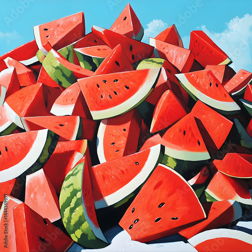 "Juicy Watermelon Slices in a Vibrant Summer Art Style – Fresh Fruit Delight"