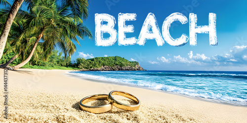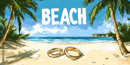 "Beach Wedding Rings Illustration – Tropical Ocean Romance Art"