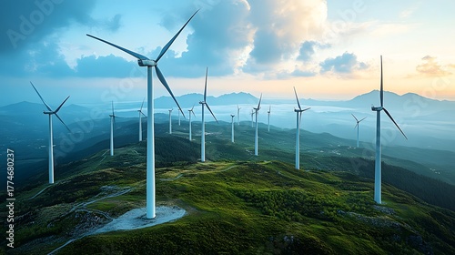"Horizon of Power: A Sweeping Offshore Wind Farm Under Dramatic Skies"
