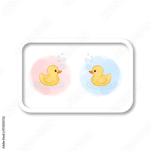 "Waddle It Be? (Duck Theme)": A cute, whimsical frame featuring rubber duckies, bubbles, and simple water ripples in a mix of pink and blue, with a bubbly or rounded font.