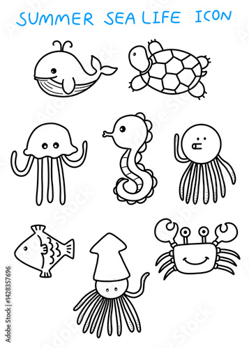 여름 바다 생물 라인드로잉 색칠 공부(summer sea life line drawing coloring)