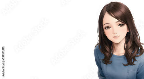 カメラ目線のロングヘアの女性 コピースペース generative ai