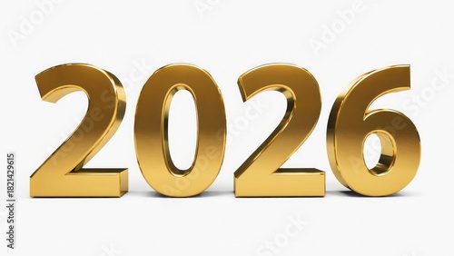 “2026” in ultra-realistic 4D metallic gold text on a plain white background