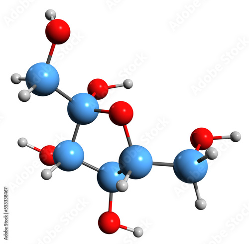 3D image of Fructose skeletal formula - molecular chemical structure of Fruit sugar isolated on white background
