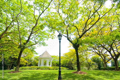 A beautiful view of the Singapore Botanic Gardens in Singapore. Opened in 1859, the gardens now cover 74 hectares.