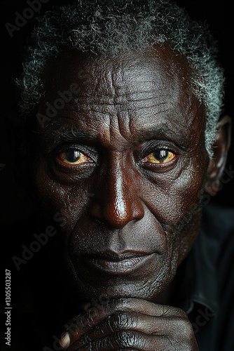 A close up of a man's face with his hand on his chin