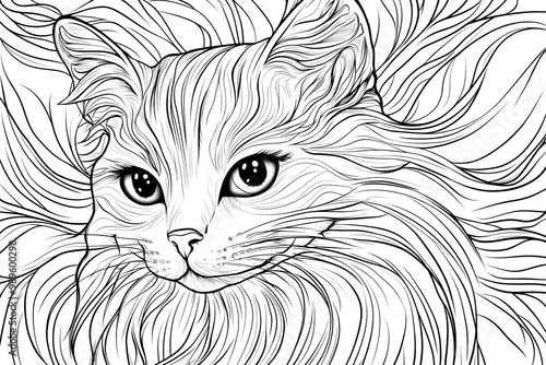 Adorable cat coloring page for children, perfect for creative stock illustrations.