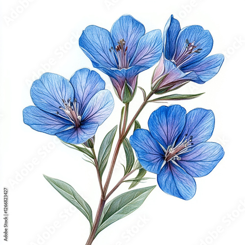 beautiful botanical blue wildflower, watercolor,white background, high details, elegant -
