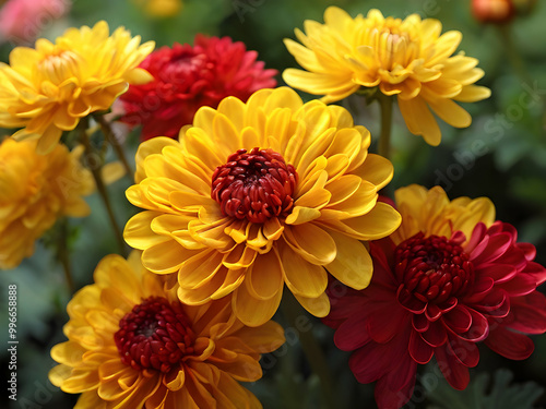 Bright Yellow and Red Chrysanthemums