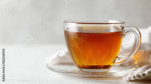 Clear glass of apple cider in minimalist style, clean white table emphasizes autumn hues.
