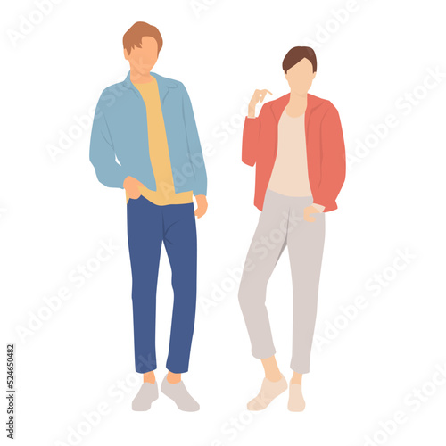Couple of young man and woman, different colors, cartoon character, silhouettes of standing business people, students, the design concept of flat icon, isolated on white background