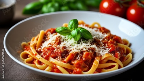 Delicious pasta dish with fresh basil and grated cheese