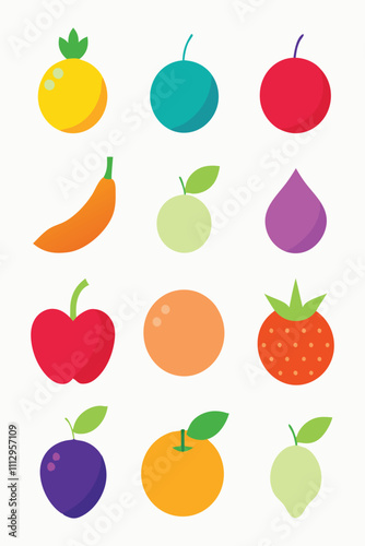 Delightful and Colorful Fruit Icons Featuring a Variety of Designs for Health, Nutrition, and Creative Projects