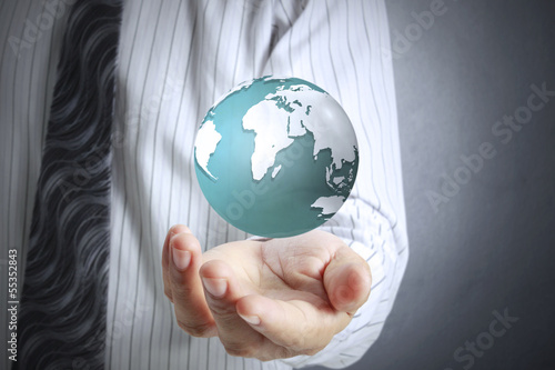 earth globe in his hands