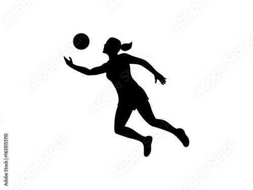 Female Netball Player in Mid-Air Catch and Silhouetted Female Volleyball Player in Action
