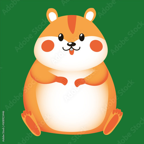 hamster, illustration, cute, cartoon, picture, animation, drawing, red, smiling, sitting, animal, pet, paws, cheeks, eyes, children's, pet food, advertising, friend, green, ears,