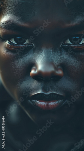Intense close-up portrait of child with serious expression, international youth day, Children's Day, Mother's Day, happy childhood,