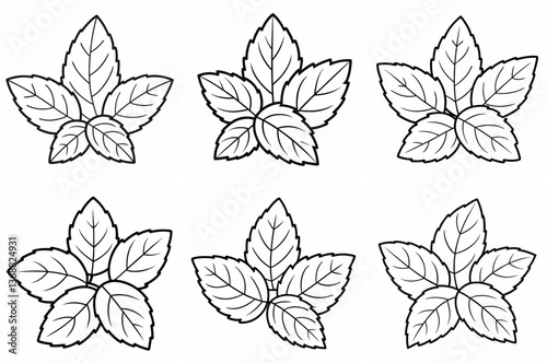 Mint Leaves Outline Coloring Book Page Line Art Drawing Set