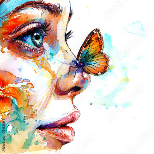 : Painting of a butterfly standing in nose of girl