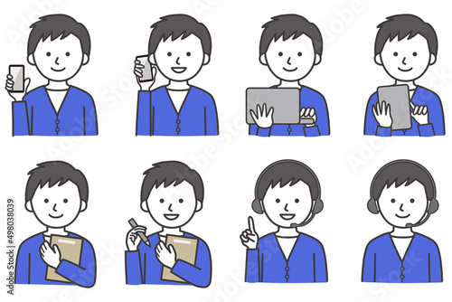 男性 PC スマホ タブレット 私服 オフィスカジュアル カーディガン 人物 イラスト ベクター