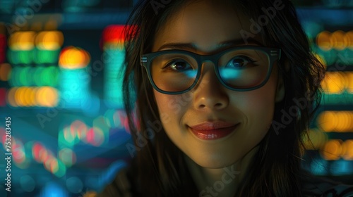 positive smile businesswoman is happy with her financial business achievement at office.