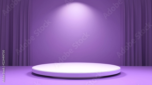 ``` Purple stage with spotlight shining down on circular white platform creating sense of drama