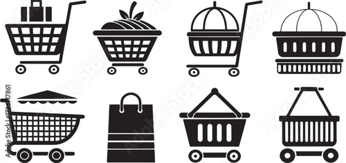 Supermarket Trolley and Shop Icons Illustration