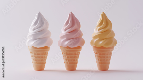 Three Flavors of Frozen Yogurt or Soft Serve Ice Cream Cones