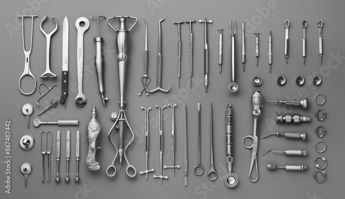 Toolkit Components: An Arrangement of Various Screw Drivers and Wrenches for Precision Work