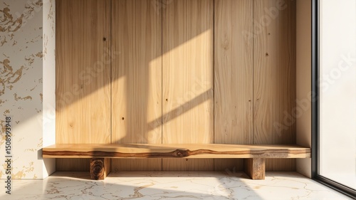 Wooden Bench in Sunlit Interior Corner