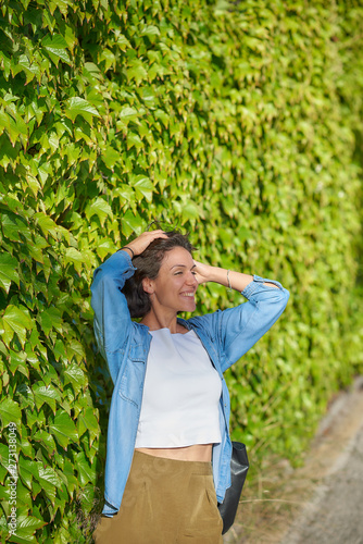 Young woman outdoors doing activities, with casual and modern style.