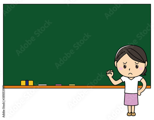 女の子01_09(黒板の前に立つ困った顔の女性)