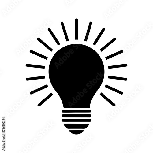 1️⃣ Creative Idea Lightbulb Icon with Rays — Black and White Design.