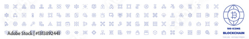 100 Blockchain Icons Collection. Thin line icon. Editable stroke. bitcoin, blockchain, cloud, digital wallet, qr code, Blockchain, art, block, safe, cards, chart, eye