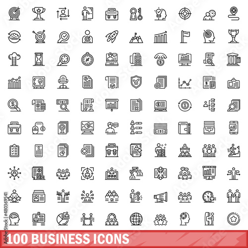 100 business icons set, outline style