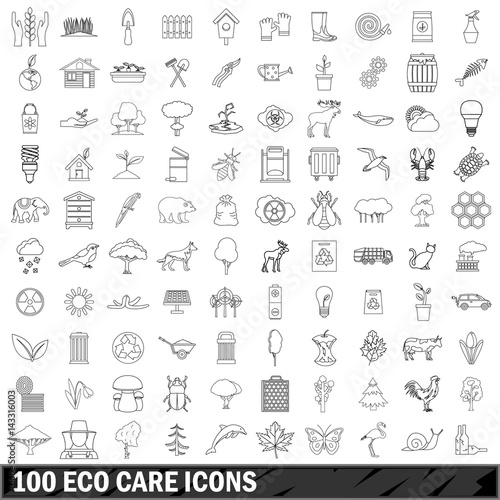 100 eco care icons set, outline style