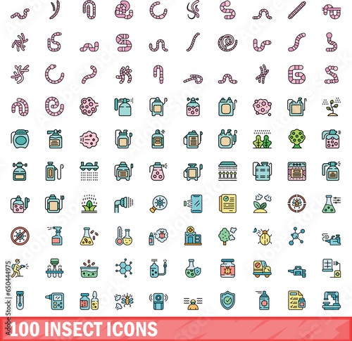 100 insect icons set. Color line set of insect vector icons thin line color flat on white