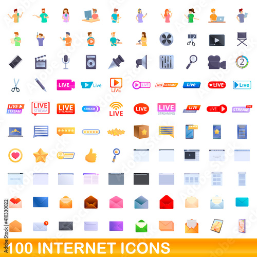 100 internet icons set. Cartoon illustration of 100 internet icons vector set isolated on white background
