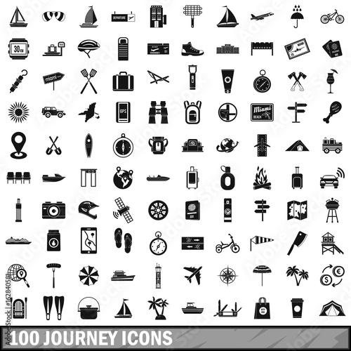 100 journey icons set, simple style