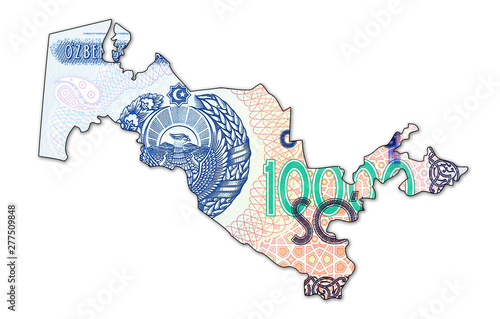 10000 Uzbek Som banknote obverse in shape of Uzbekistan